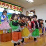 みんなで力を合わせて「うんとこしょ、どっこいしょ」とかけ声をかけ、「大きなかぶ」の劇をしたり、