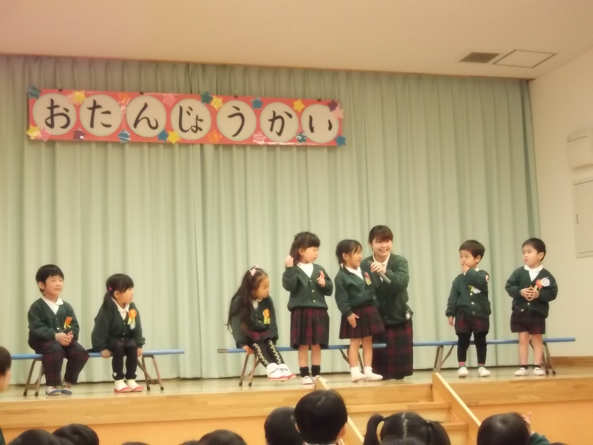 2017年4月26日 / 最終更新日時 : 2017年4月26日 shokuin DIARY☆HAPPY ブログ お誕生日おめでとう! 今日は4月生まれのお誕生会がありました。 ステージに上がった4月生まれさん。 はじめはドキドキした表情でしたが、みんなに「おめでとう!」とお祝いしてもらうとニコニコ笑顔になりました♪ 4月生まれのみなさん、おめでとうございます! これからもたくさん食べて、たくさん遊んで、大きくなっていきましょうね。