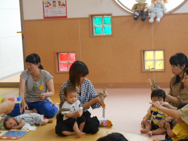 2019年7月10日 / 最終更新日時 : 2019年7月10日 shokuin DIARY☆HAPPY ブログ のびのびタイム・るんるんタイム『七夕製作』 今日は10組の親子が遊びに来てくれました。 8月の仙台七夕を前に七夕の歌を歌ったり、短冊に願い事を書いたり、飾りをつけたり思い思いに素敵な笹飾りを作りました。 皆の願い事が叶うといいですね。