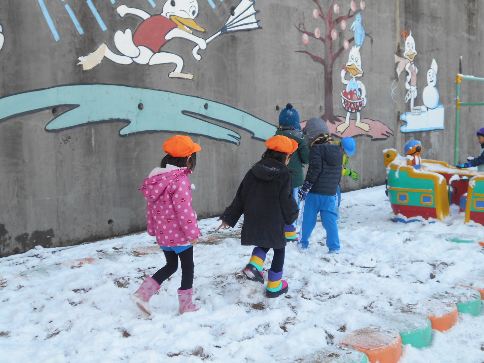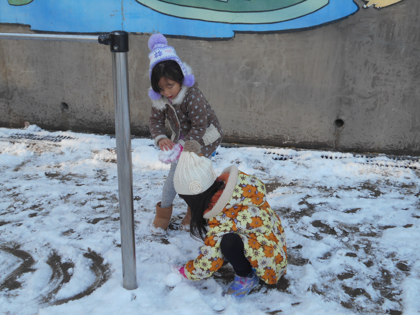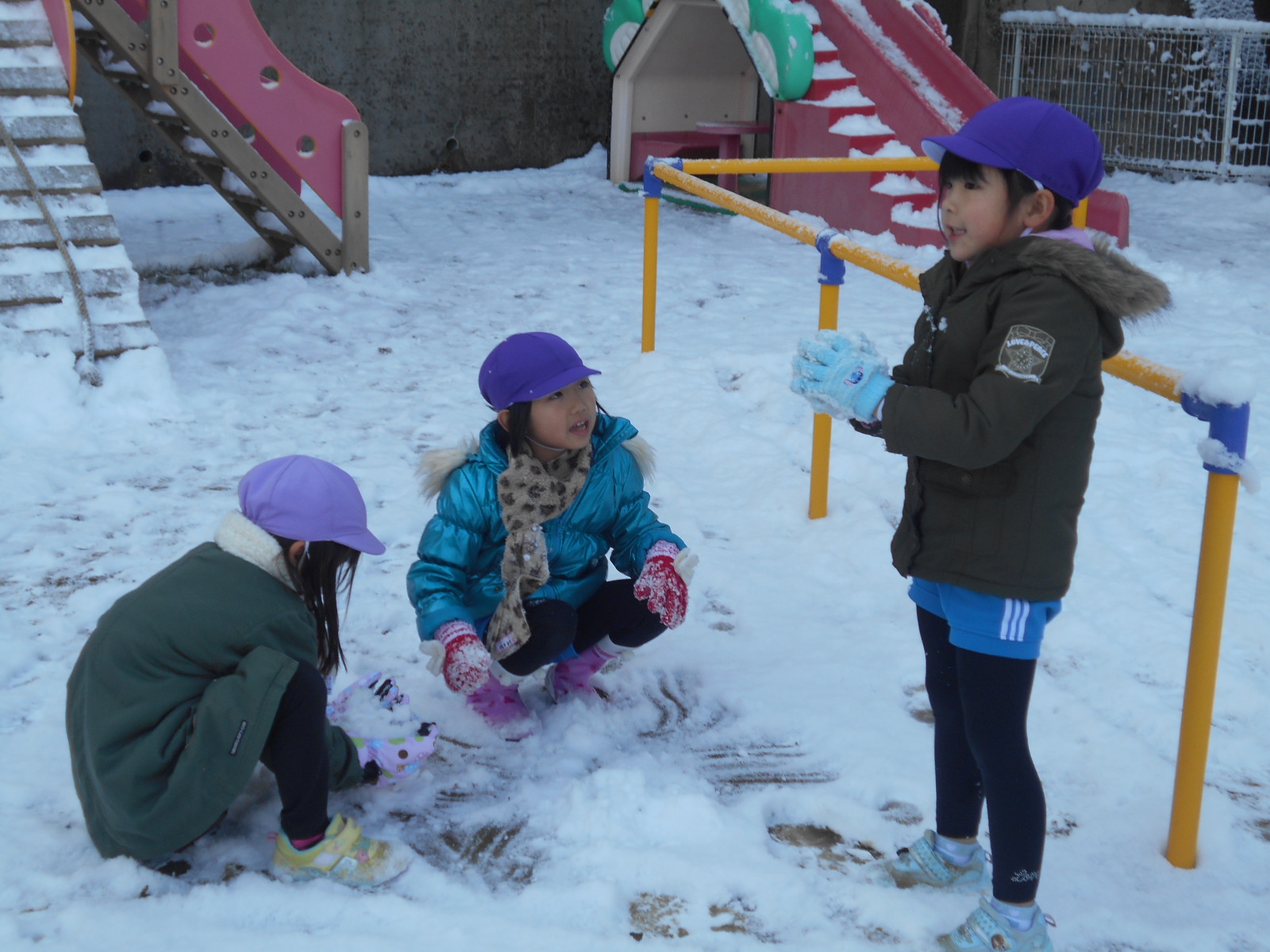 もっと雪降ったら雪だるまやかまくら作ろうと話しながらかえっていきました。雪降ったら遊びましょうね!